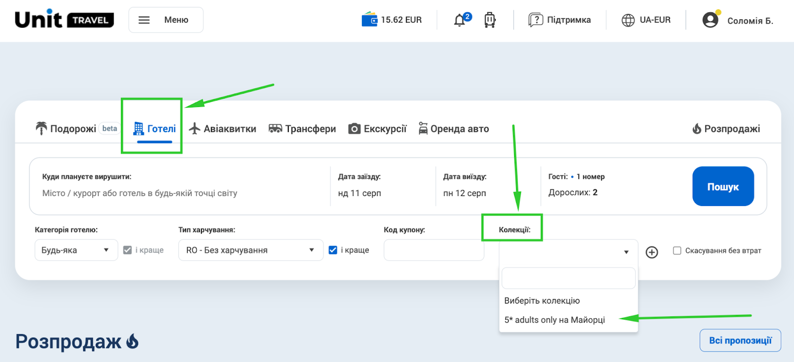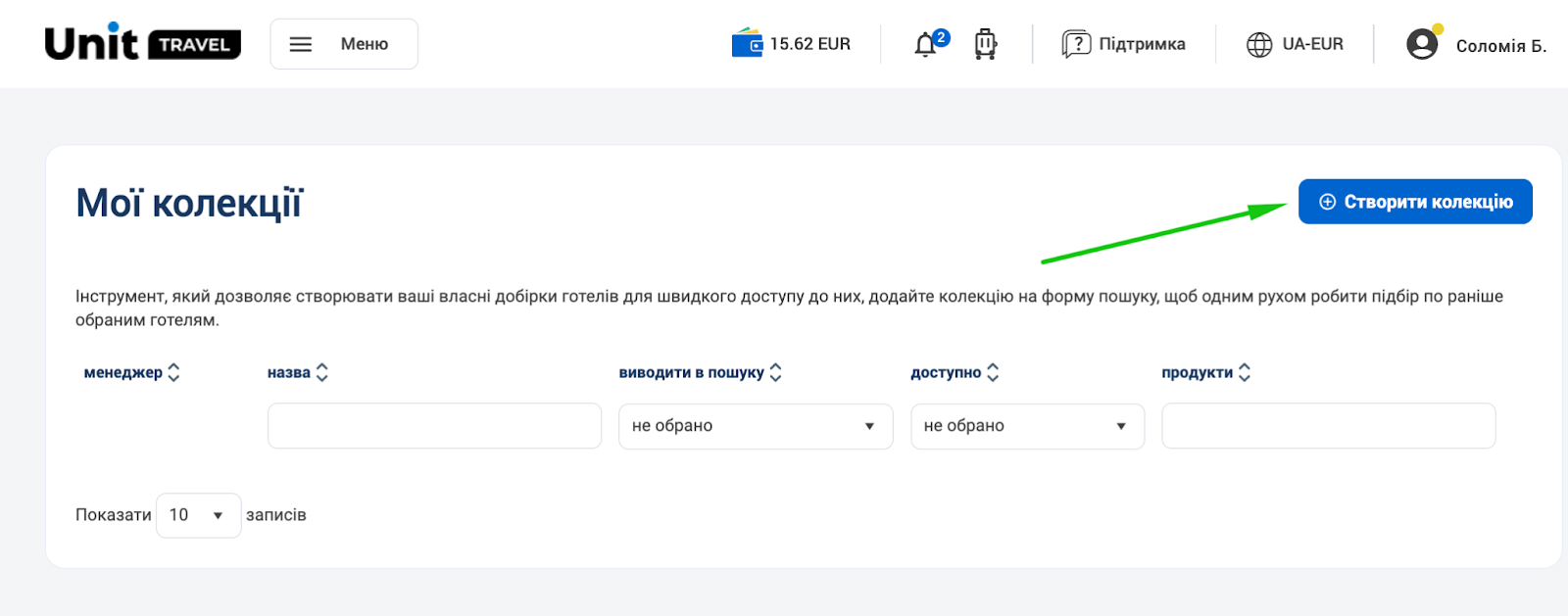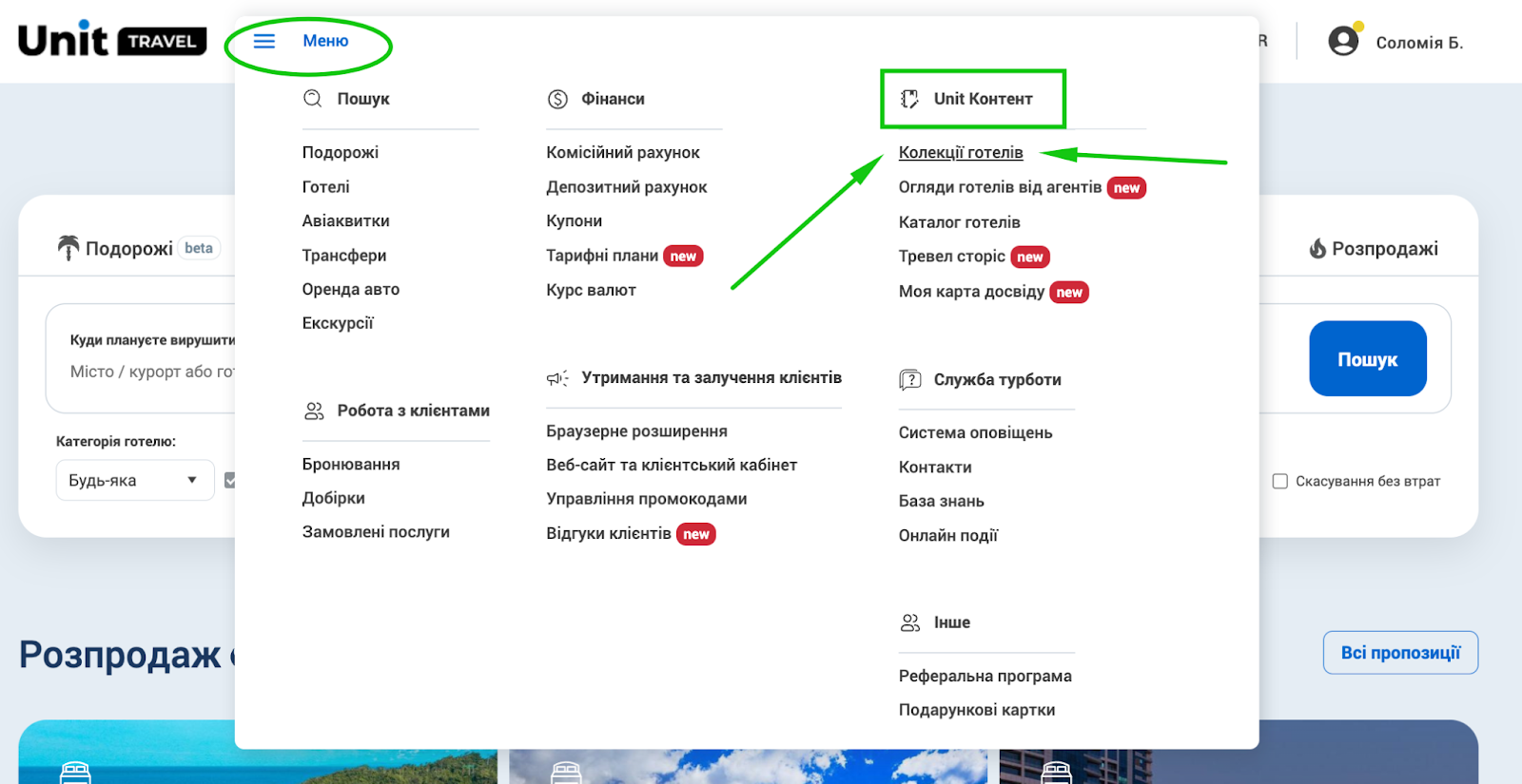 Перейдіть до розділу Меню > Unit Контент > Колекції готелів